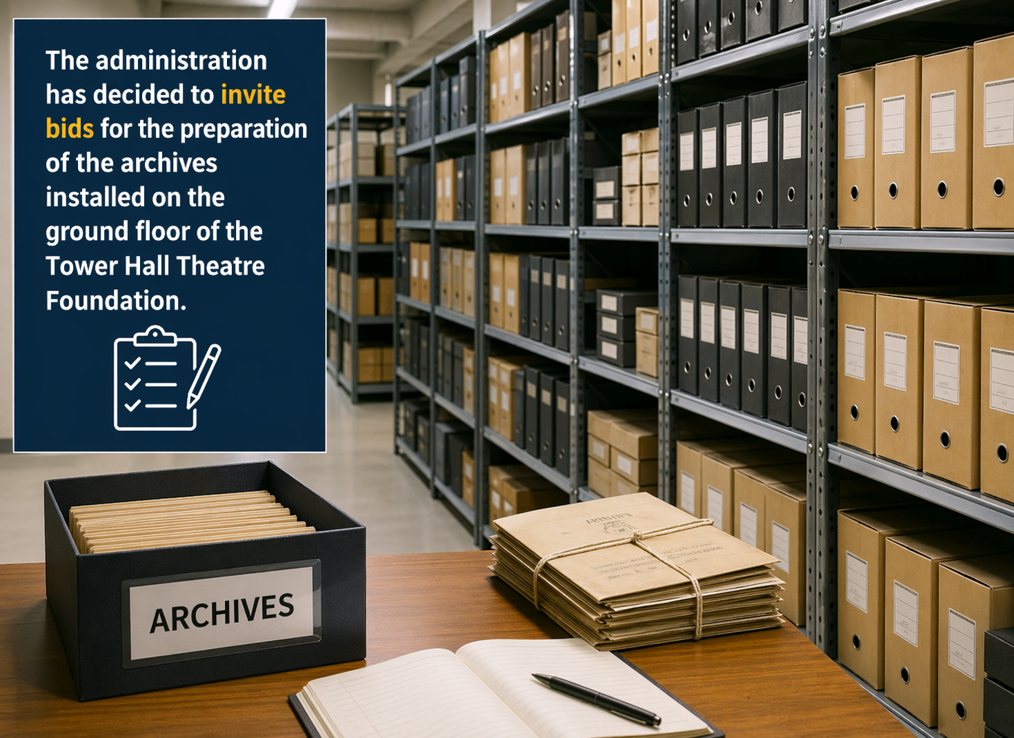 ටවර් හෝල් රඟහල පදනමේ බිම් මහලේ ස්ථාපිත ලේඛනාගාරය සකස් කිරීම සඳහා මිල ගණන් කැඳවීමට පාලනාධිකාරිය තීරණය කර ඇත.